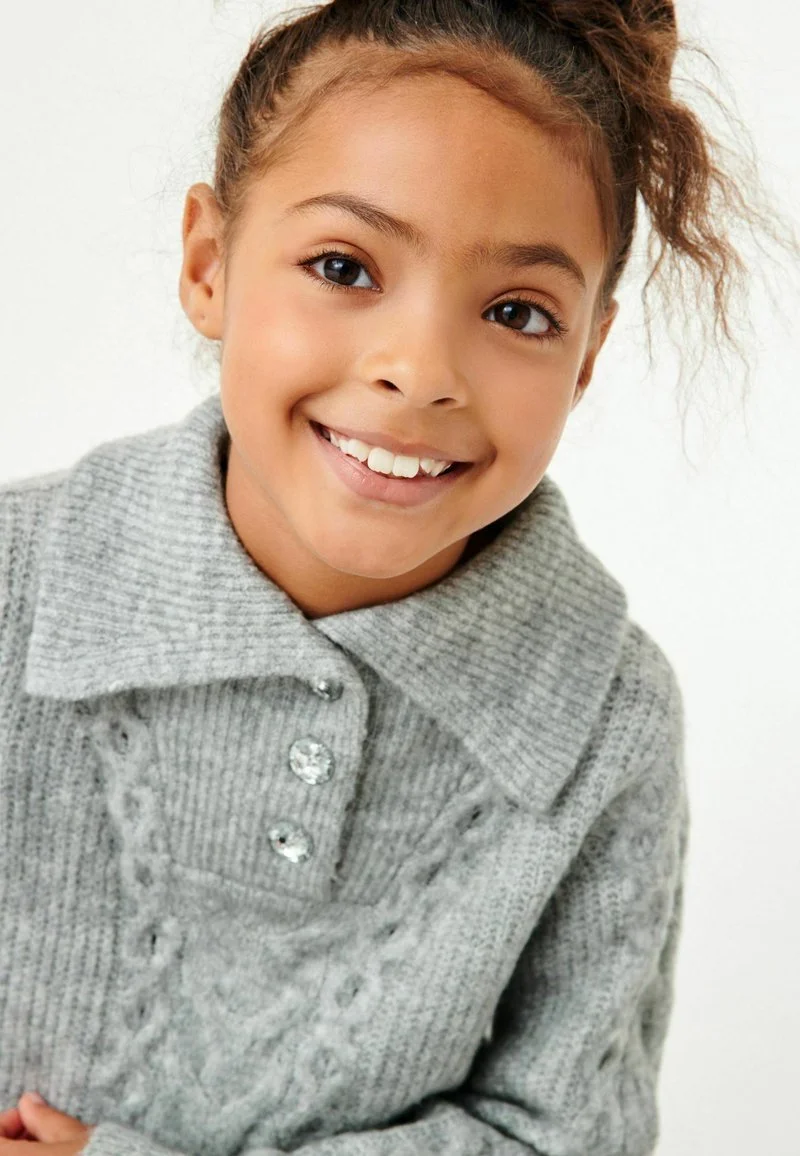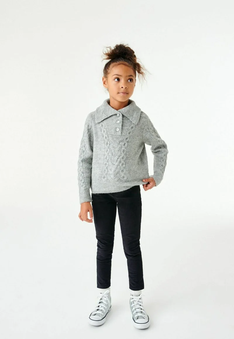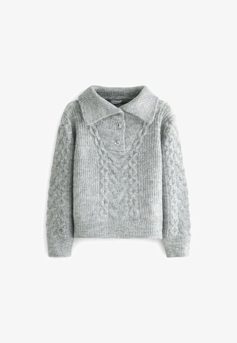 Next CABLE COLLAR WITH GEM BUTTONS STANDARD – Strickpullover – Grey