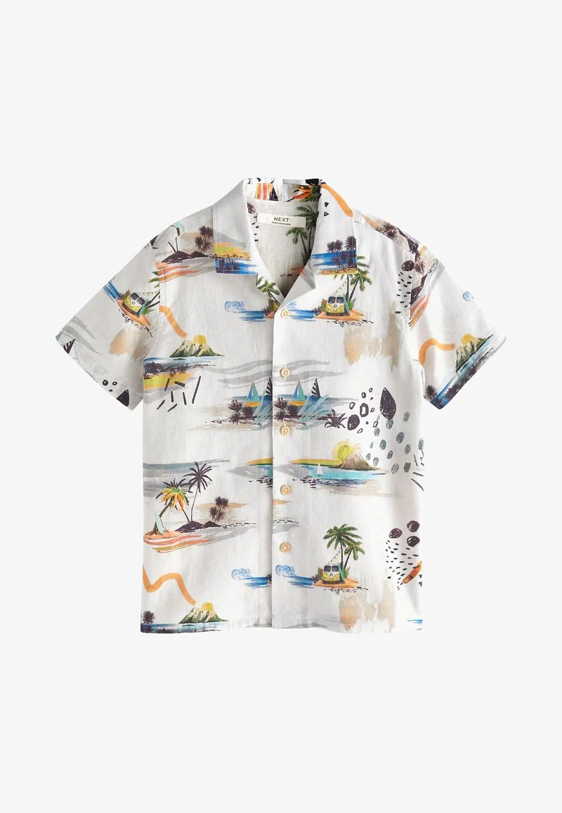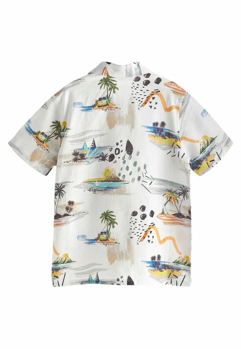 Next SHORT SLEEVE STANDARD – Hemd – Ecru Cream Beach Print