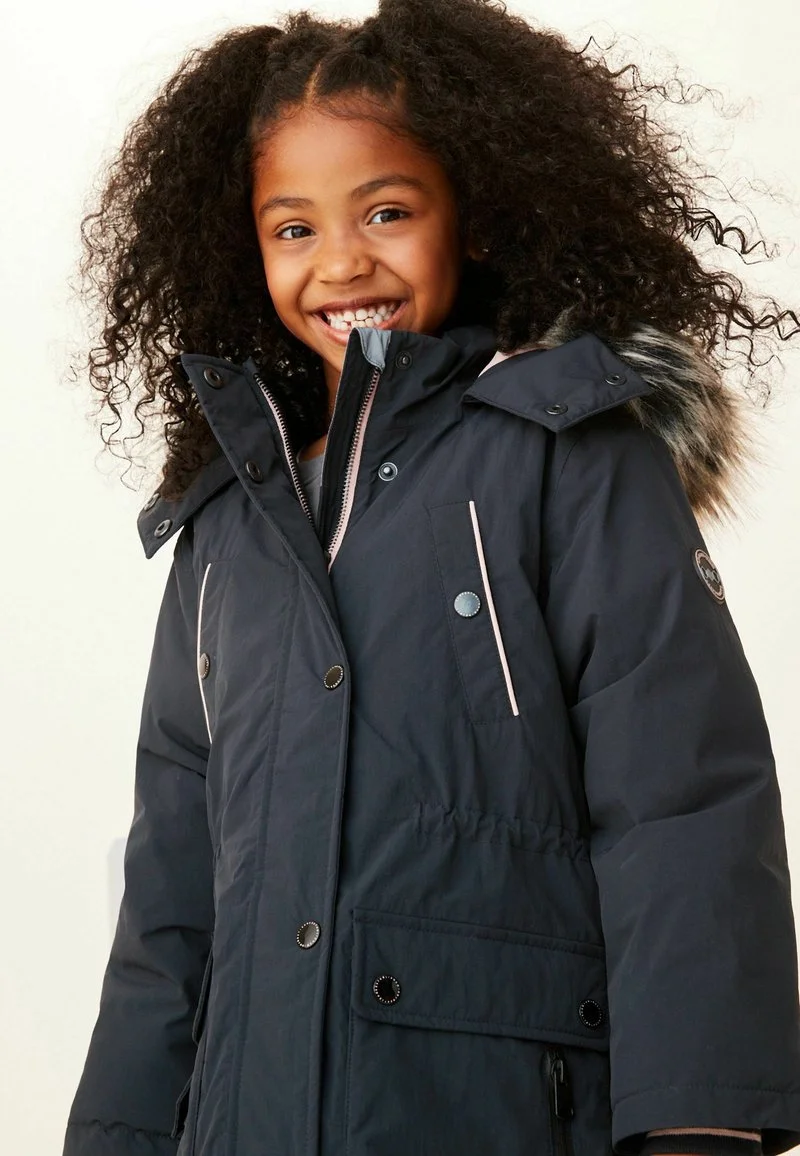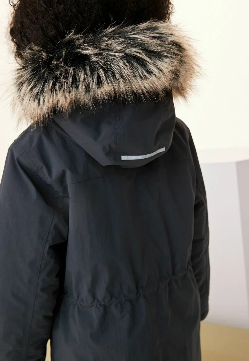 | Details Kapuze | Gefütterte Kapuze, abnehmbare Kapuze, abnehmbarer Kunstfellkragen |